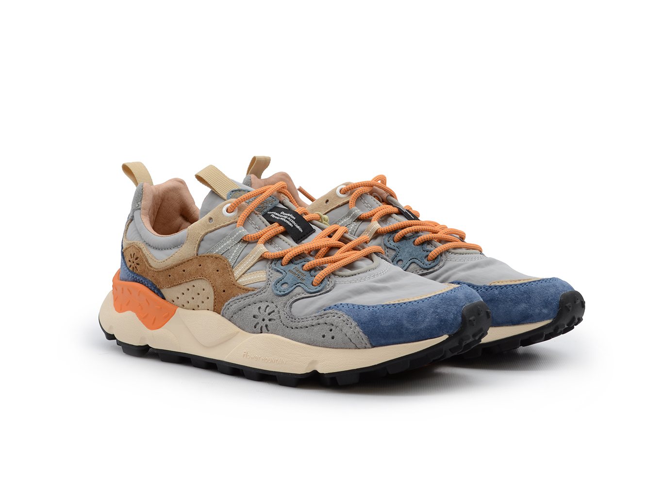 Sportiva nelle forme, la sneaker Yamano 3 è la scelta più cool anche per i look metropolitani: la tomaia in tessuto grigio e sabbia con inserti in suede grigio,avio e dettagli multicolor presenta le traforature iconiche e un'allacciatura con occhielli rinforzati e stringhe trekking, ispirati ai modelli performance.Comfort e benessere sono assicurati dalla soletta interna in sughero anatomica e antibatterica, e dal fondo in gomma ultra leggera con sagomature laterali e battistrada dentellato.