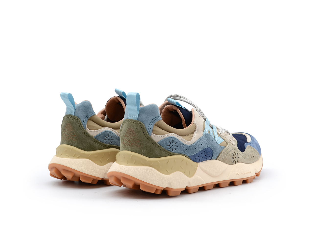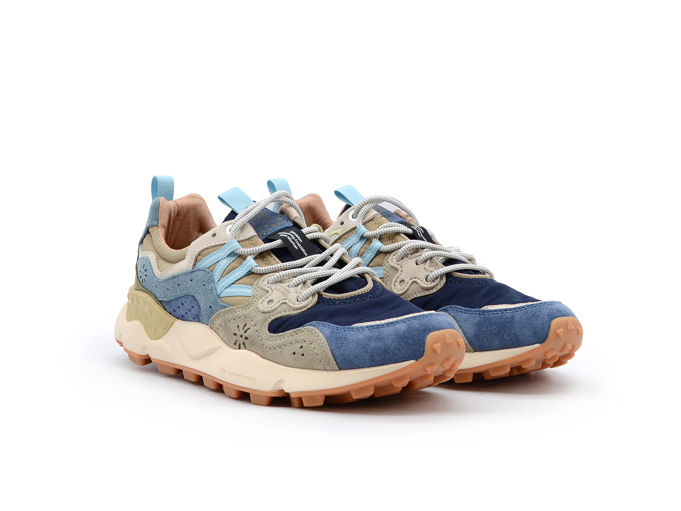 Sportiva nelle forme, la sneaker Yamano 3 è la scelta più cool anche per i look metropolitani: la tomaia in tessuto blu e tortora con inserti in suede grigio e multicolor presenta le traforature iconiche e un'allacciatura con occhielli rinforzati e stringhe trekking, ispirati ai modelli performance.Comfort e benessere sono assicurati dalla soletta interna in sughero anatomica e antibatterica, e dal fondo in gomma ultra leggera con sagomature laterali e battistrada dentellato.