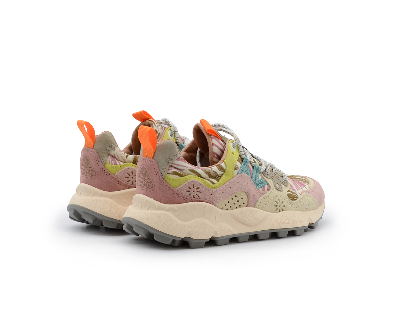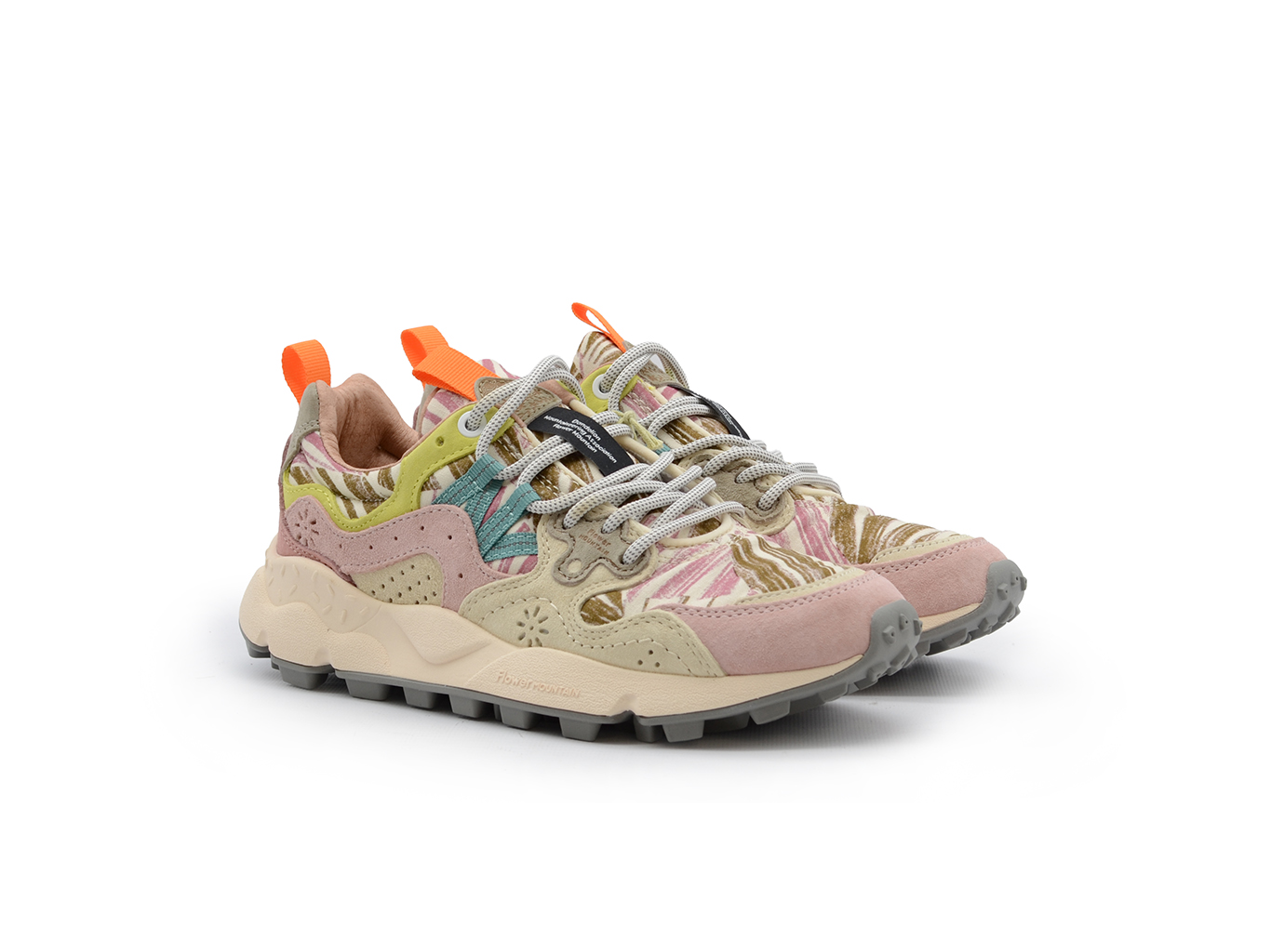 Sneaker in tessuto con dettaglio multicolor e inserti in suede. Occhielli rinforzati e lacci trek. Soletta interna in sughero naturale antibatterico, fondo in gomma ultra leggera con battistrada dentellato.