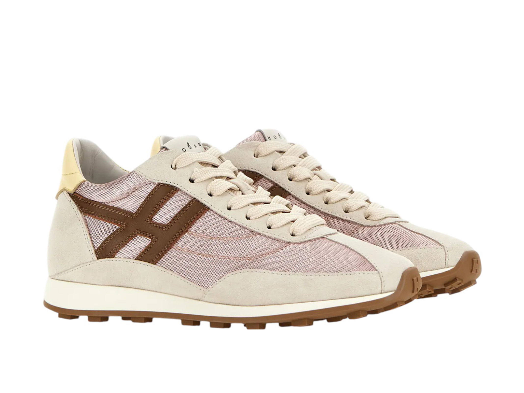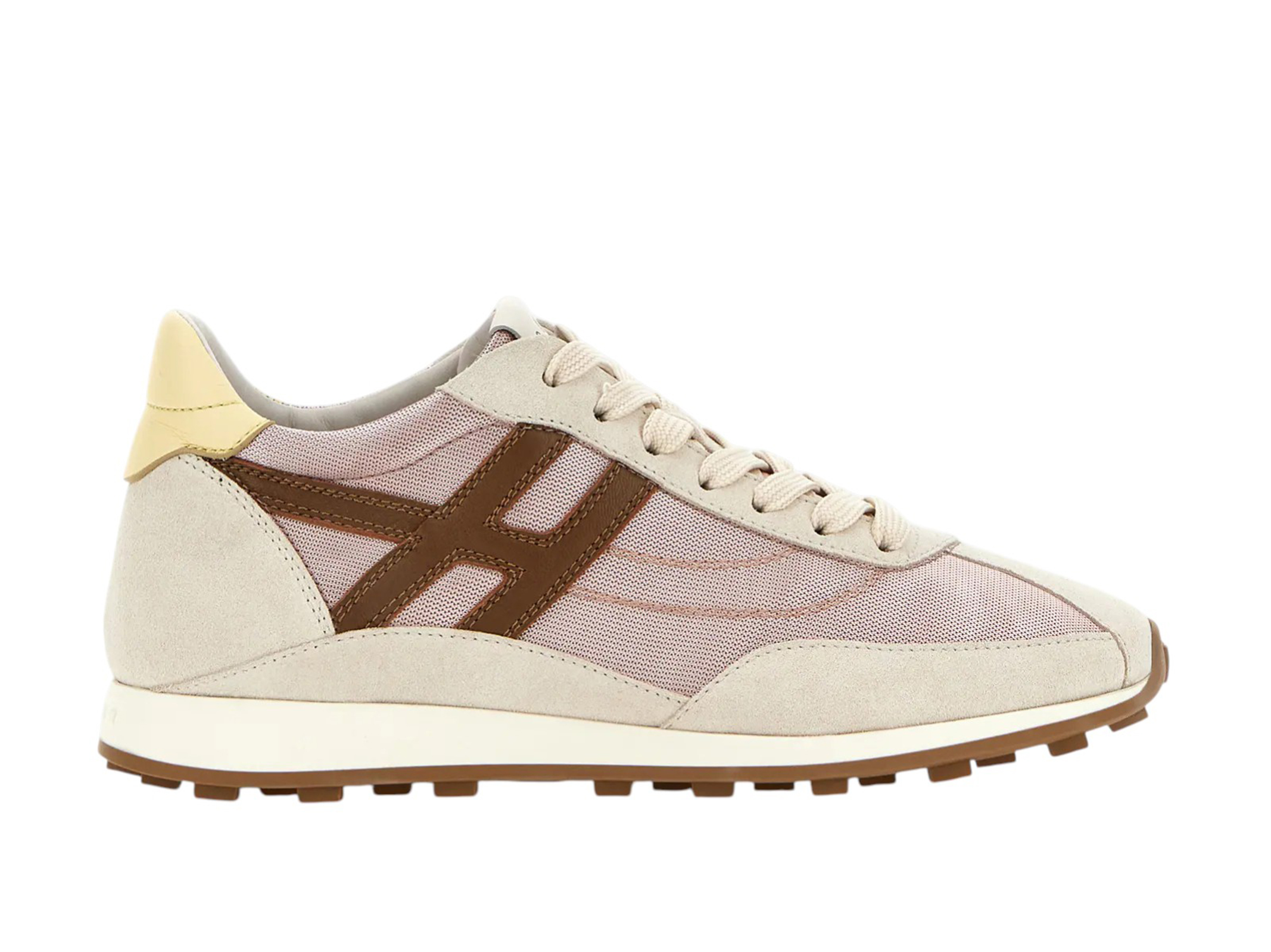 Una moderna interpretazione del modello sprinter dagli archivi Hogan. Leggere e dinamiche, ispirate all'atletica retrò, queste sneakers combinano una tomaia morbidissima e una suola dal gusto vintage, con tacchetti a forma di H sul battistrada. Una mini zeppa nascosta offre elevazione senza alterare l'estetica sportiva del modello. Realizzate in pelle scamosciata e tessuto tecnico, con l'H obliqua che si estende verso il tallone, sono completate da una soletta in memory foam..Sneakers Hogan Athletic donna.Made in Italy.Tomaia in pelle scamosciata