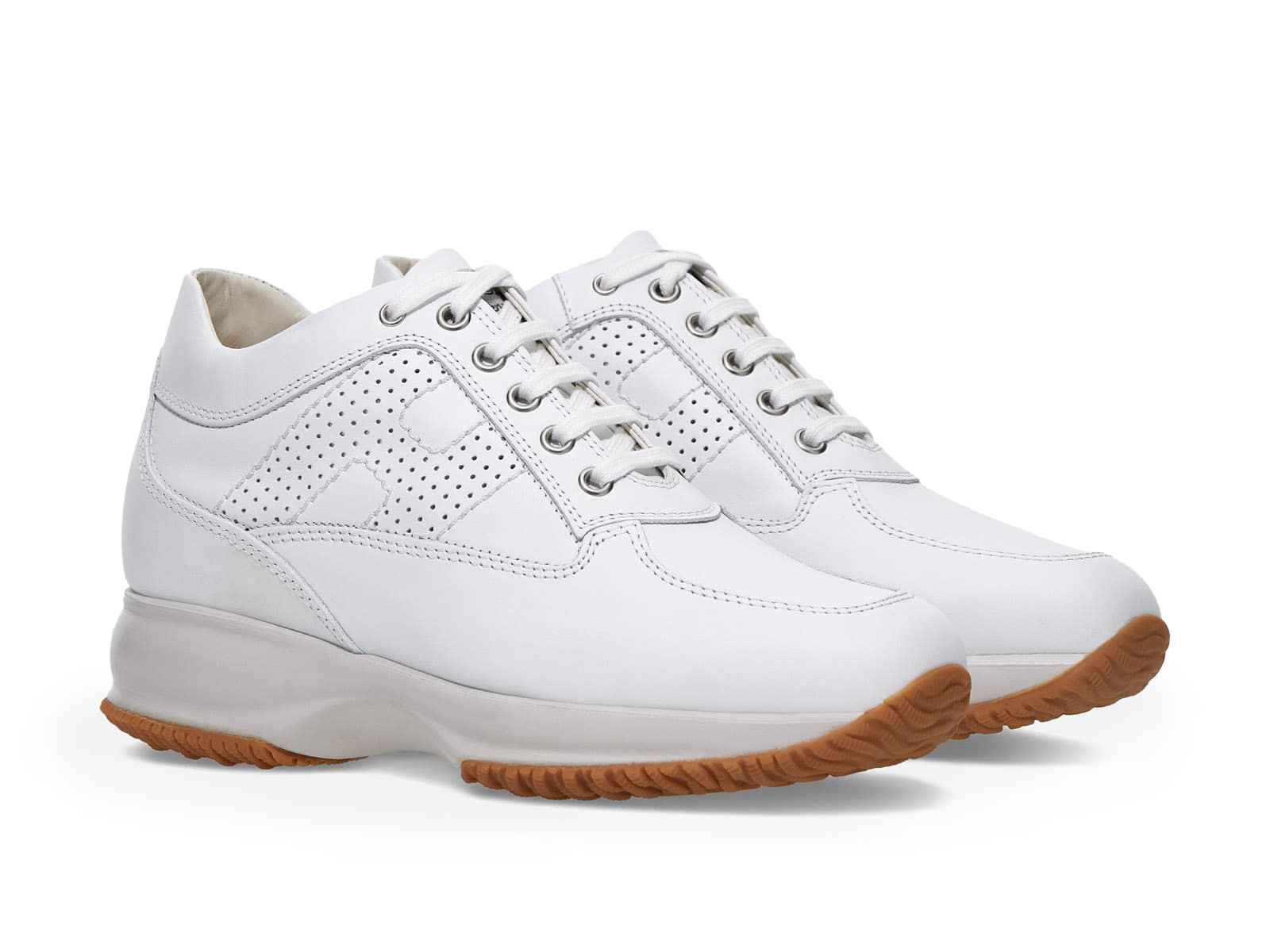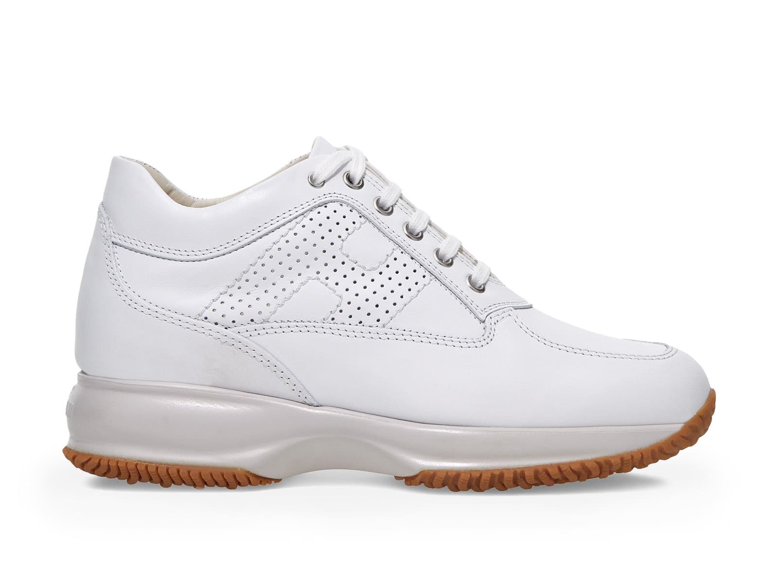 Interactive in pelle, con impunture a vista e H laterale traforata. Casual chic. TAGLIA e VESTIBILITÀ: vestibilità ampia, ti consigliamo di ordinare mezzo numero in meno..Sneakers Interactive Hogan donna