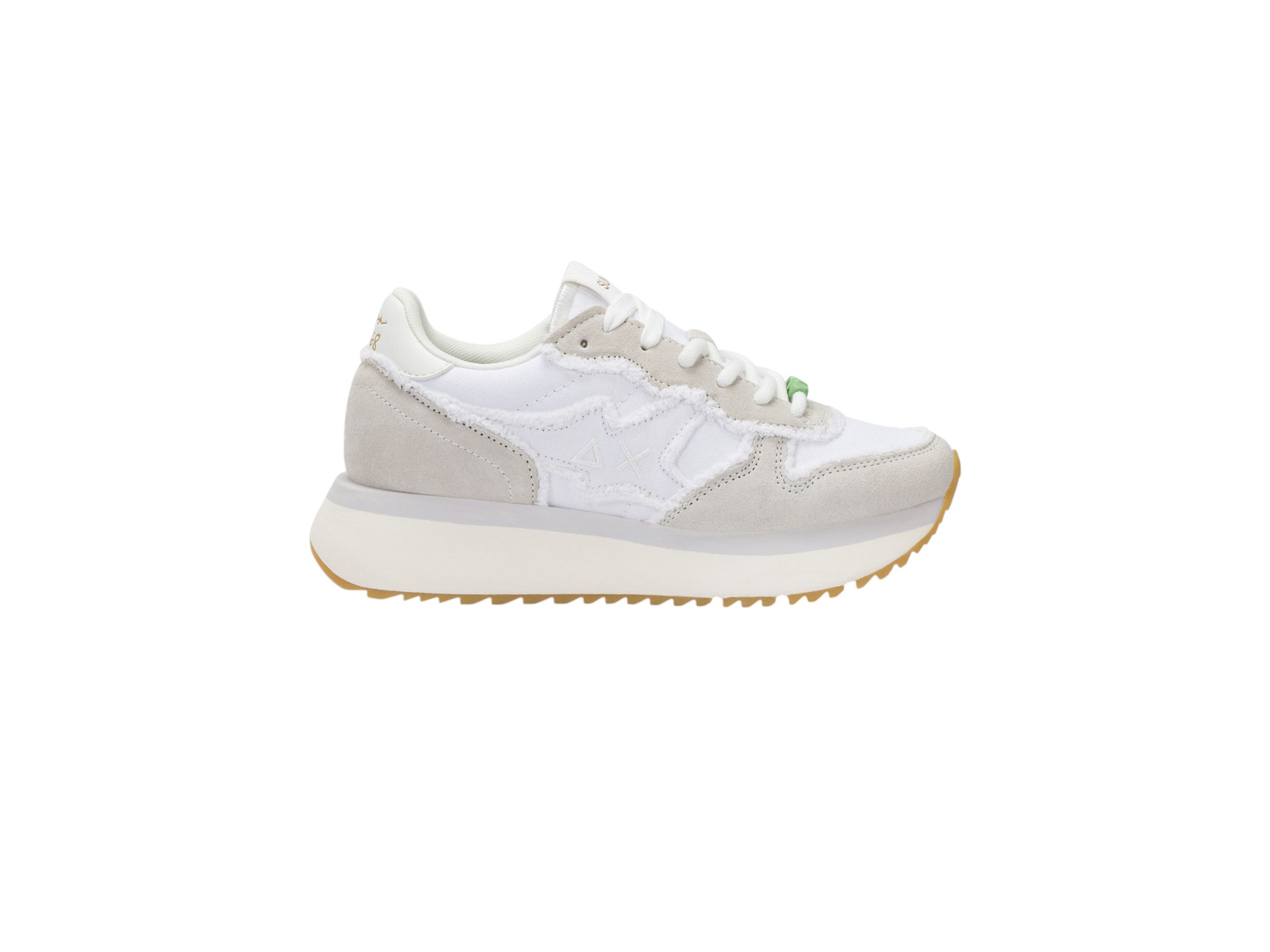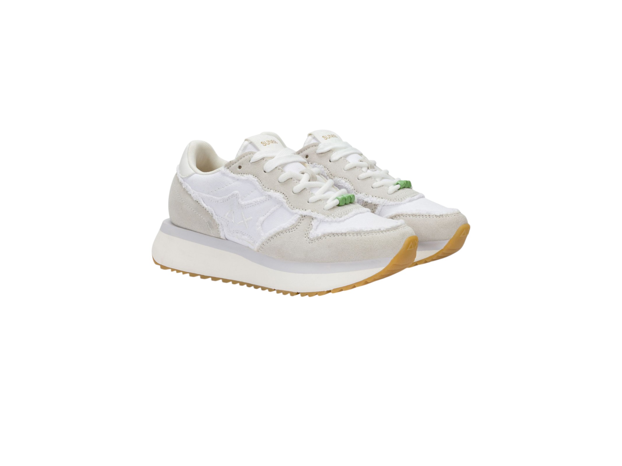 Stile running.Realizzata in suede e canvas.Patch con logo SUN68 ricamato.Dettagli sfrangiati.Chiusura con lacci e perline