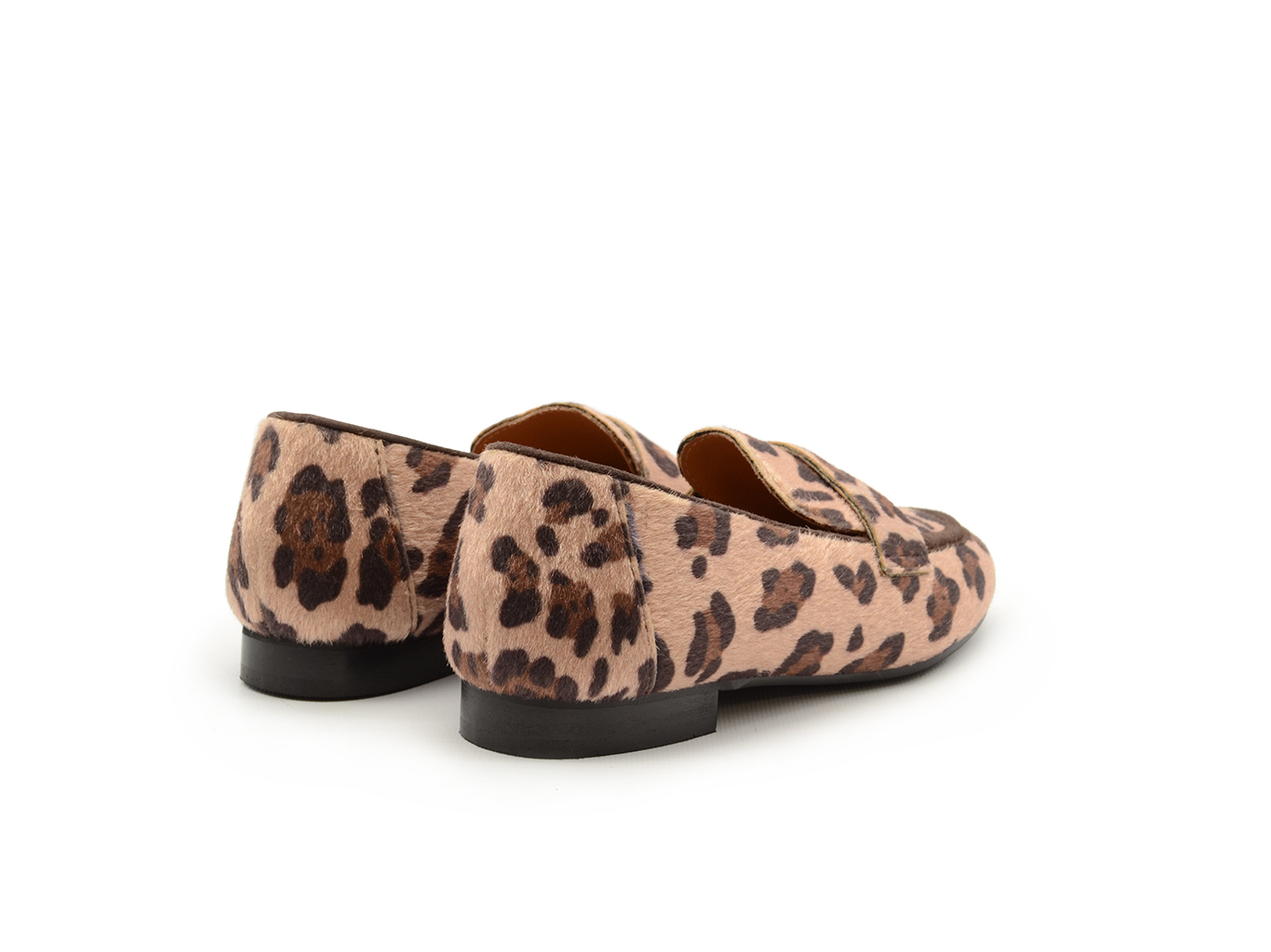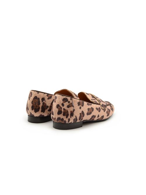 Mocassino con fascetta marchio Zanfrini in cavallino stampato effetto leopardo.Punta stondata.Tacchetto di 1cm.Made in Italy